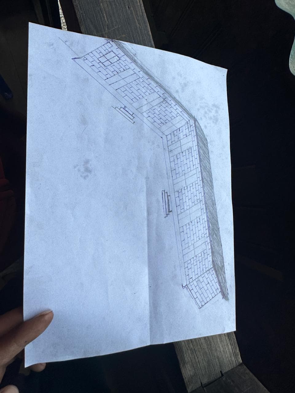 The structure is shaped like an L. The five restrooms each measure 6 feet by 5 feet by 10 feet in height. Additionally, bathrooms should be 6 feet wide by 10 feet long by 10 feet in height.